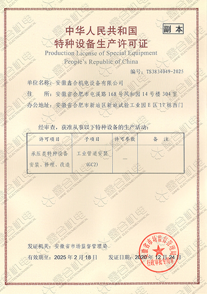 目前我公司具有建筑機(jī)電安裝工程專業(yè)承包一級資質(zhì)、總承包二級、GC2壓力管道設(shè)計、施工資質(zhì)。現(xiàn)有高級工程師5名、高級技師55名、工程師22名、助工25名、技術(shù)員22名、各類專業(yè)技師50多名,強(qiáng)大的技術(shù)力量及精良的施工隊伍,為客戶提供全方位服務(wù)。 公司本著“一切為了用戶”的經(jīng)營理念,“以品質(zhì)求生存、以誠信贏市場、以管理促發(fā)展”為要求,努力為廣大客戶提供專業(yè),優(yōu)質(zhì)、高效的服務(wù)。